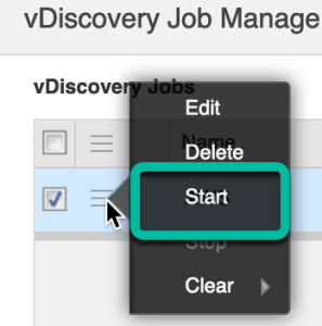 Now to run the vDiscovery. Click the drop down arrow on Discovery and select vDiscovery Manager. Select the AWS Job, then click start.